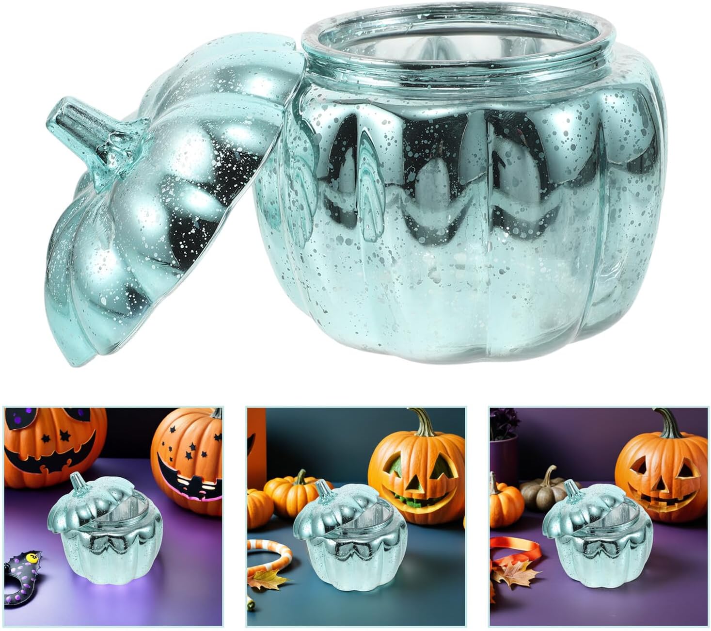 Package List 1 x pumpkin jar Features -Size:19.00X17.60X17.60cm/7.47X6.92X6.92in -Product Info: Pumpkin-shaped storage jar -Multipurpose organizer: this cute kitchen storage jar doubles as a pumpkin shaped storage jar for organizing small items like buttons or jewelry, keeping your kitchen countertop and desk tidy glass sealed jar -Sealed freshness: the lid design on this glass sealed jar ensures your snacks and candies remain fresh, acting as a reliable food preservation jar for sugar, candy, or treats coffee canister -Material:Glass -Color:Sky-blue -Beautiful Shape: These unique pumpkin shape jar is made from sturdy glass and perfect for every setting from bathroom and kitchen storage, to home and party decoration, fall displays, and style canister -Festive appeal: the pumpkin shaped glass candy jar with lid instantly adds a cheerful fall and halloween vibe to your holiday decor, making it a perfect decorative kitchen canister for seasonal celebrations cute glass jar with lidGoods Descriptiontea coffee storage canister Ideal for kitchen organization, the glass storage jar is wonderful for storing cookies, tea, and chocolates, making countertop displays more festive.glass sealed jar This food jar provides excellent visibility and keeps your snacks fresh with its sealed lid.food storage canister Pumpkin candy jar with lid showcases an eye-catching glass pumpkin design, perfect for fall and holiday festivities